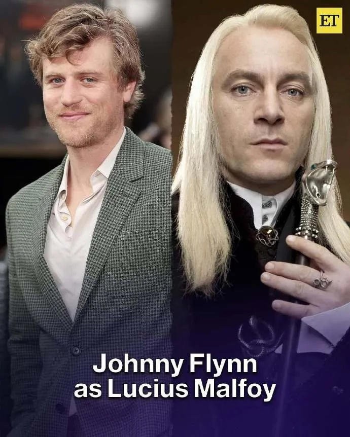 卢修斯·马尔福 (Lucius Malfoy) 由 约翰尼·弗林 (Johnny Flynn) 饰演,他除了演戏(最近出演了剧集《雷普利》(Ripley))外,还是一位成功的音乐家。